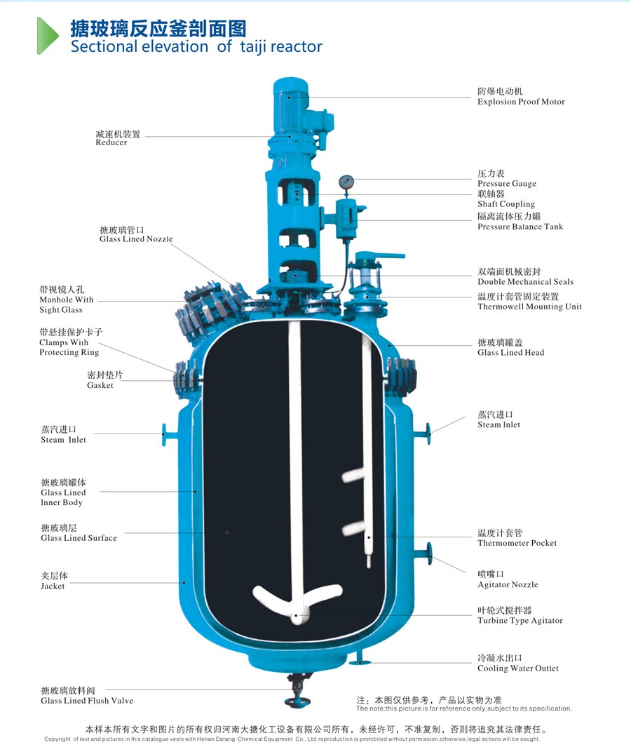 4、我们的电加热搪玻璃反应釜采用江阴硅普2号以上性能高的釉质结合成熟的搪瓷技术涂覆在反应釜的内表面上,确*优良的耐腐蚀、机械冲击和急剧的温度变化,和*越的耐久性。